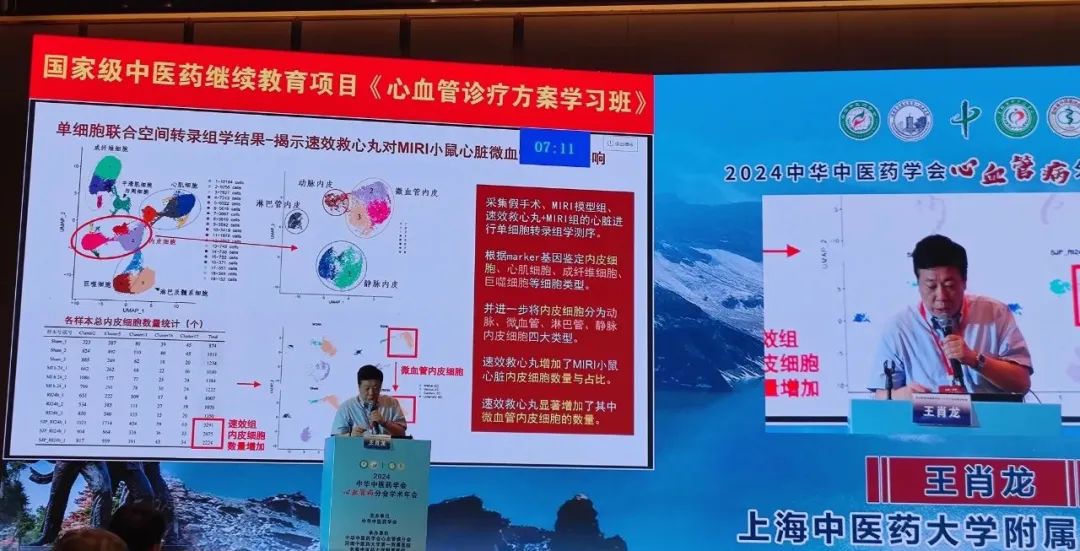 上海中医药大学附属曙光医院王肖龙主任详细阐述了现代中药治疗MIRI的单细胞空间转录组学研究。他强调,PCI是急性心肌梗死的有效治疗手段,但仍有约50%的缺血心肌细胞受到PCI术后再灌注损伤影响,而中医药在抗心肌缺血再灌注损伤中具有独到作用。